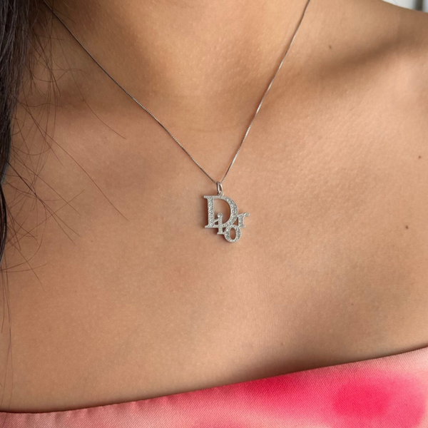 Pendants: 10cm spellout necklace made from authentic Dior earrings.