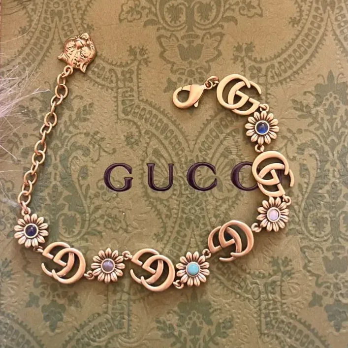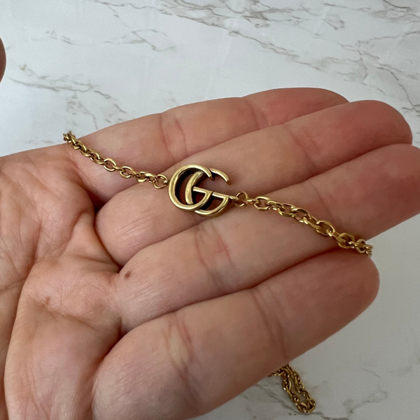 Pendant: 15mm Gucci charm reworked into a necklace/choker made from authentic Gucci flower bracelet.