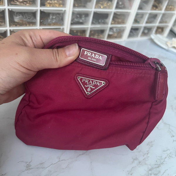 Authentic auburn Prada pouch bag logo - Pearl necklace