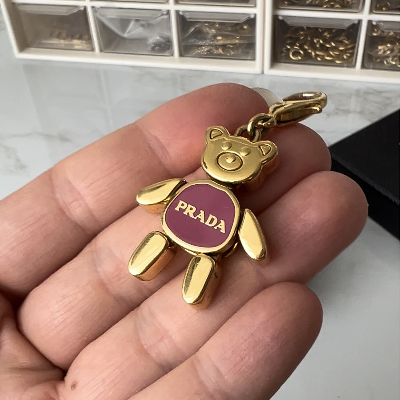 Preowned & preloved authentic Prada teddy bear keychain/ bag charm.